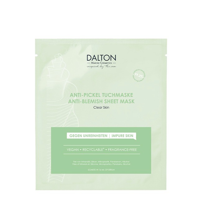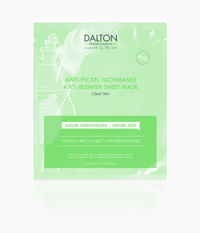 Освежающая маска пропитана сывороткой (16 мл), содержащей комплекс активных веществ для кожи, склонной к акне: морские пептиды помогают предотвратить появление анке, уменьшить размер прыщей и успокоить покраснение, вызванное воспалением.