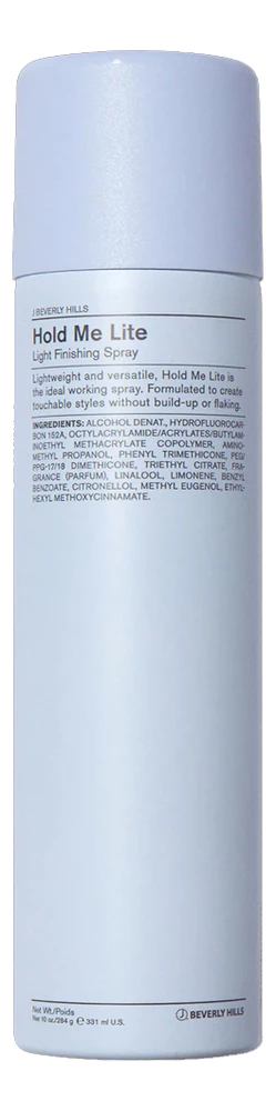 Лак для волос легкой фиксации Hold Me Light Light Finishing Spray от J BEVERLY HILLS содержит Alcohol Denat, Hydrofluorocarbon 152a, Water/Aqua/Eau, Octylacrylam Ide/Acrylates/Butylaminoethyl Methacrylate Copolymer, Aminomethyl Propanol, Peg/Ppg-17/18 Dimethicone, Triethyl Citrate, Phenyl Trimethicone, Ethylhexyl Methoxycinnamate, Bht, Fragrance/Parfum, Linalool, Limonene, Alpha-Isomethyl Ionone, Benzyl Benzoate, Citronellol.