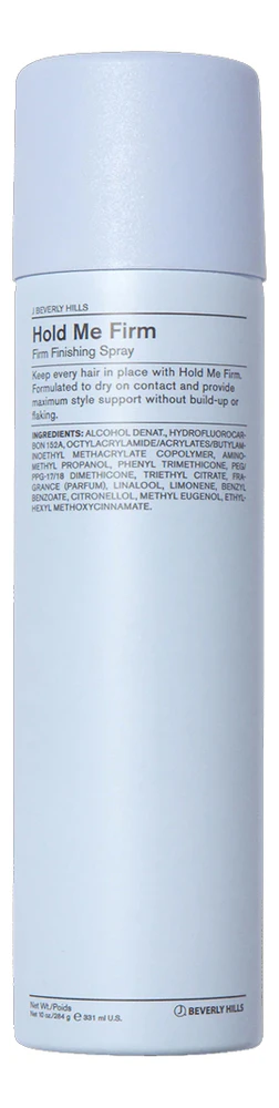 Лак для волос сильной фиксации Hold Me Firm Firm Finishing Spray американского бренда J Beverly Hills подходит для работы с любым типом локонов.