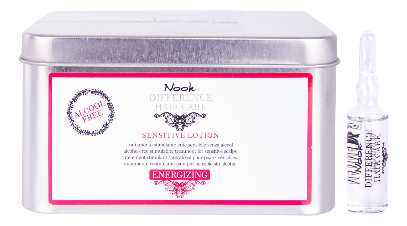 Лосьон Difference Hair Care Sensitive Lotion от итальянского профессионального бренда Nook – это эффективное средство против выпадения волос, которое создано специально для чувствительной кожи головы. Формула лосьона не содержит спирта, что обеспечивает бережный уход. Продукт обладает очищающими и питательными свойствами, укрепляет волосяную луковицу, нормализует выработку себума.